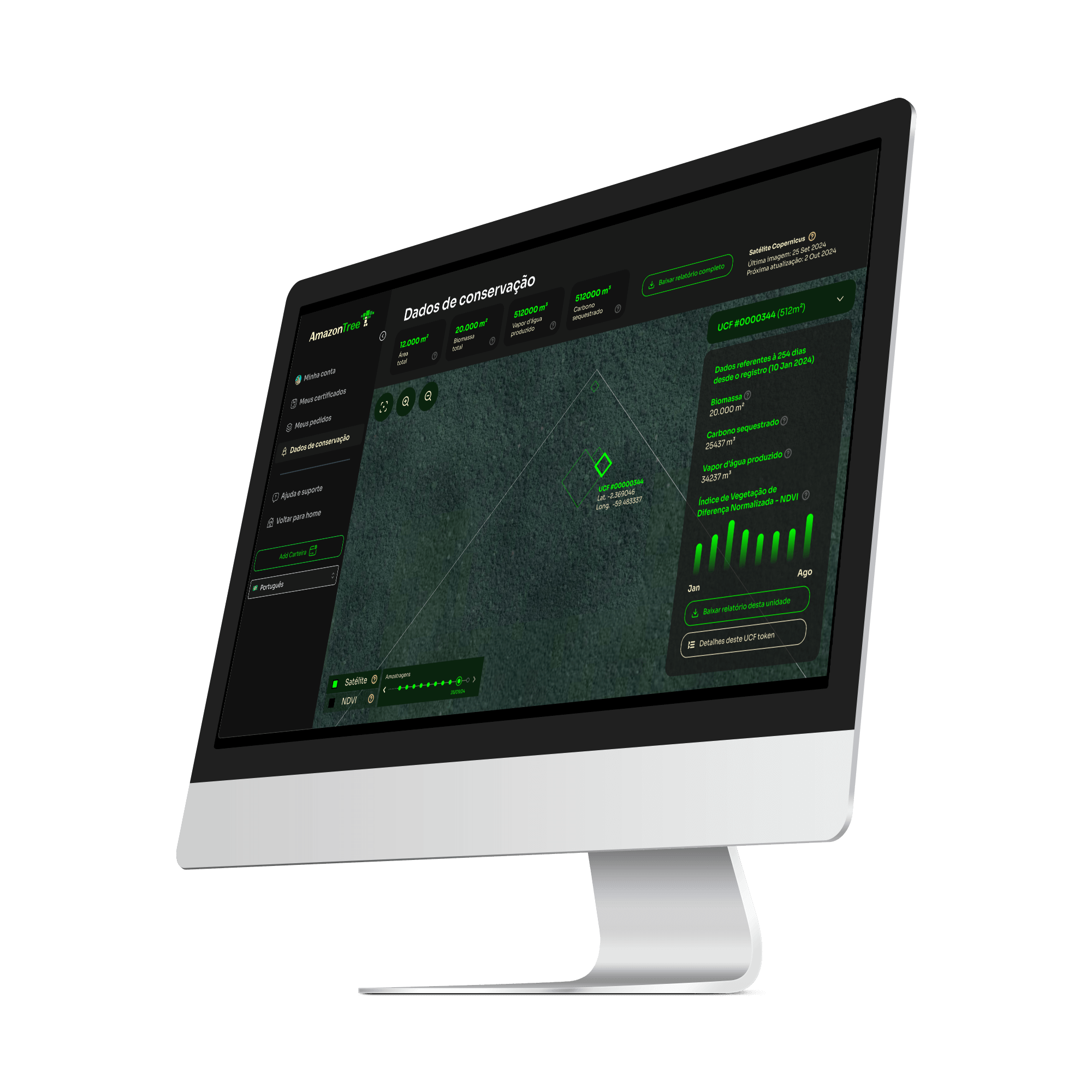 Cada token é individualmente numerado, inviolável e está ligado a uma área específica de floresta amazônica nativa - ele é seu, rastreável e está disponível para consulta sempre que necessário.